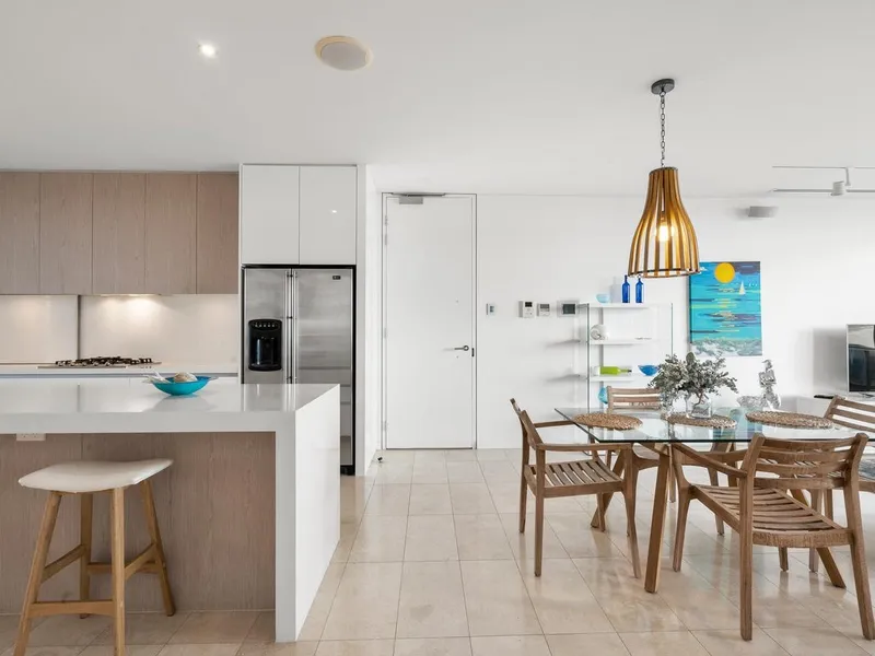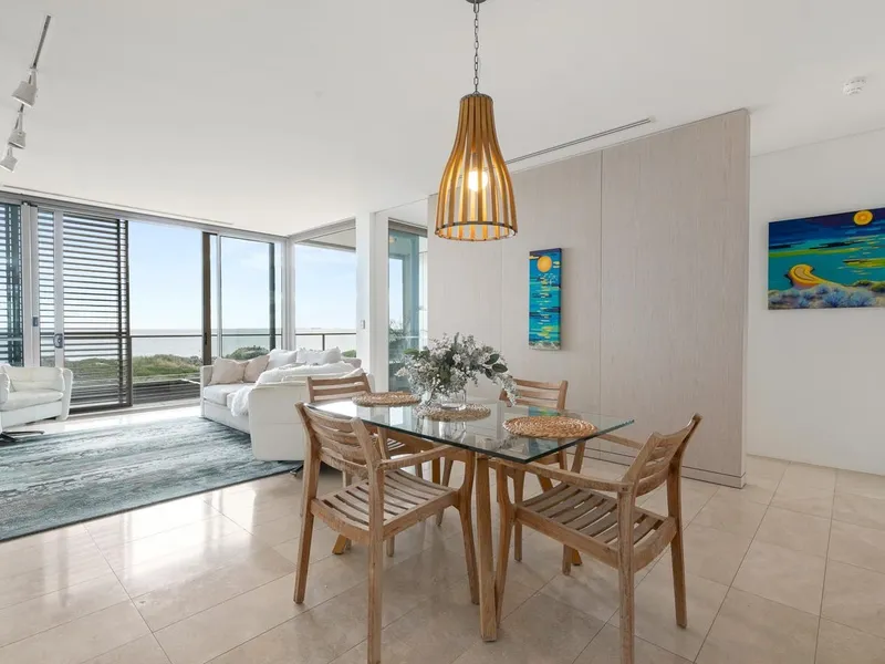 Inside, the apartment combines quality finishes with generous spaces, a large balcony, and stunning ocean outlooks that create a relaxed coastal atmosphere in one of the areas most desirable waterfront locations.