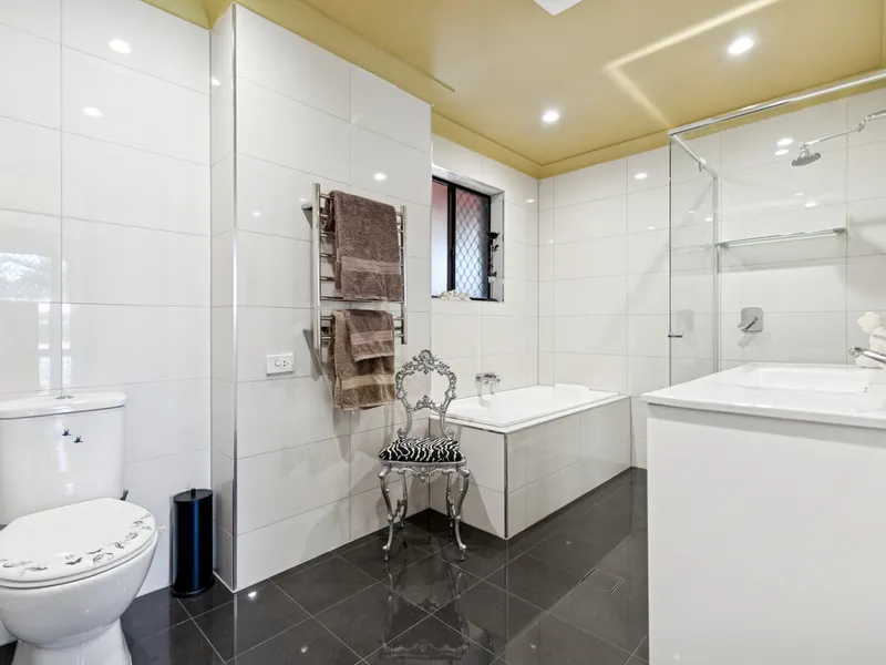 • Three generous bedrooms with built-in robes; master suite at the front of the home with an updated ensuite featuring a soaking tub