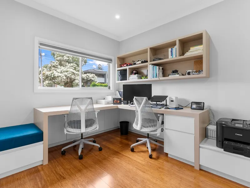 Stylish and thoughtfully appointed, the home features quality finishes and a versatile layout ideal for modern family living. The kitchen is equipped with custom cabinetry and a spacious island bench, perfect for everyday living and entertaining.