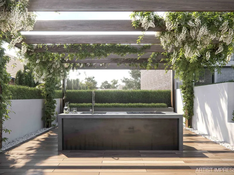 - Stainless Steel SMEG appliances, gas cooktop, ample storage, dishwasher, essa stone benchtops