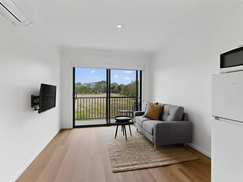 FULLY FURNISHED: Your apartment comes equipped with everything you need: a comfy bed, lounge, dining setting, outdoor furniture, smart TV, and kitchenware.