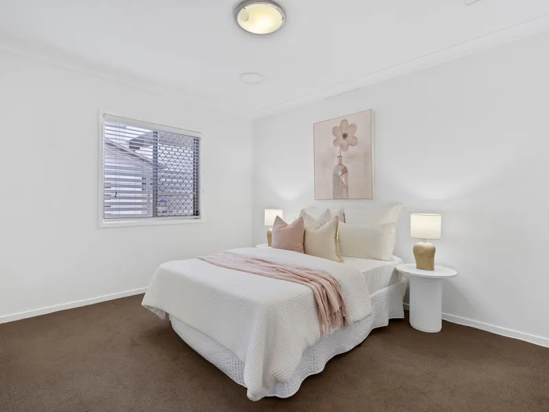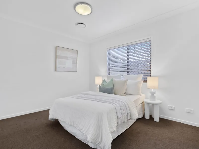 At the heart of the home, the stylish kitchen is both elegant and practical, featuring stone benchtops, ample storage, stainless steel European appliances, gas cooking and a dishwasher. A separate powder room, internal laundry and secure remote lock-up garage with direct internal access further enhance everyday convenience.