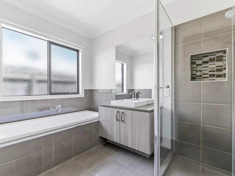 The spacious master bedroom features a walk-in robe and a private ensuite complete with a large shower and double vanity. The remaining three bedrooms are well sized and serviced by the central bathroom, which includes both a shower and a bathtub to suit family needs.