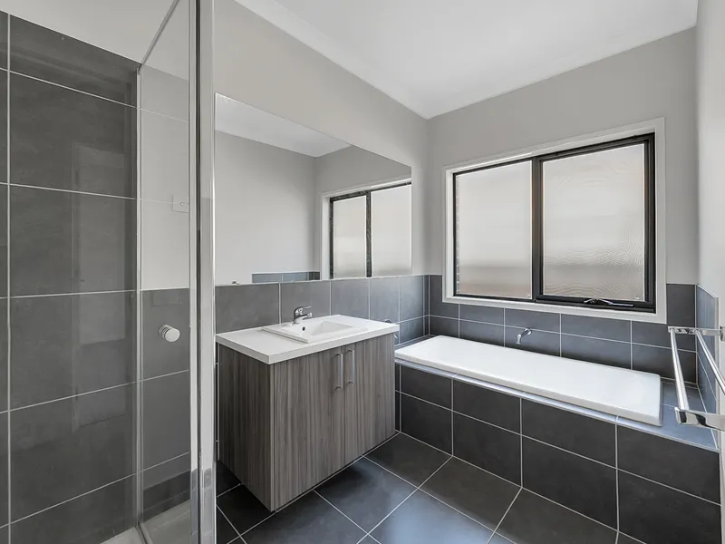 The main bathroom includes both a bath and shower, with a separate toilet for added convenience. The property also features a spacious laundry with external access.
