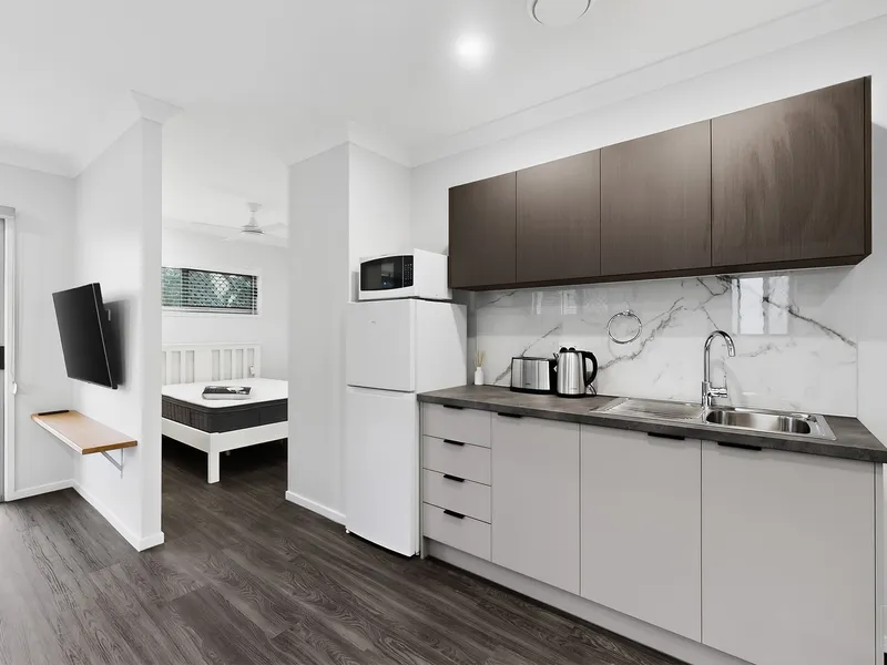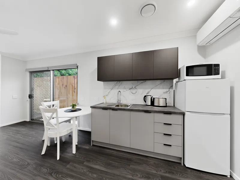 MICRO APARTMENT: Enjoy the privacy of your own securely accessed bedroom, bathroom, kitchenette, living area, and outdoor space within a property of 5 Micro Apartments.