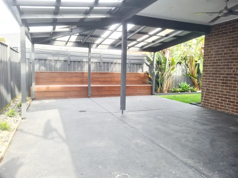 Step outside to a spacious outdoor entertaining area which features a ceiling fan, built in bench seating and with the low maintenance rear yard this home is ideal for entertaining.