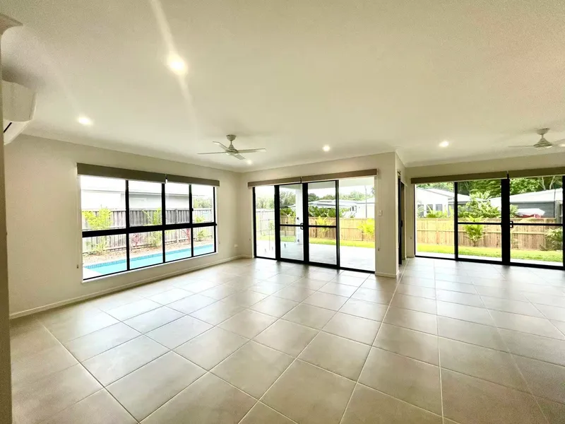 Upon entrance you are immediately impressed with this property and all her beauty. The oversized, open plan living, and dining area has a warm homely feel with multiple light filled windows and quality shutters to allow the natural breezes throughout. With wide opening glass sliding doors that allow you to move seamlessly from indoor to outdoor entertaining whilst overlooking the tropical gardens and in ground pool.