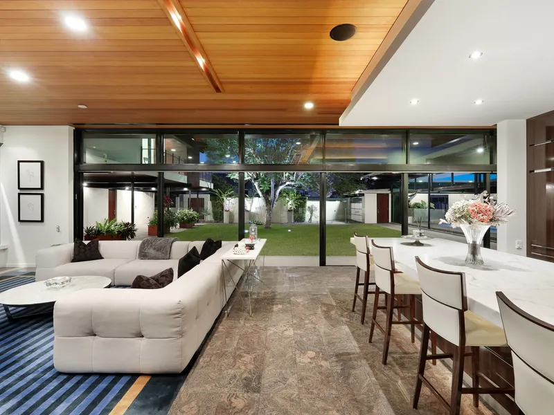Designed for those who love to host, this property offers an array of resort-style features. Enjoy cinematic experiences in your soundproof home theatre. The main living areas flow out to an alfresco entertaining terrace where you can dine overlooking the river as the city skyline comes to life after dusk. Two timber decks extend over the water, providing a perfect setting for sunset cocktails or relaxed waterfront lounging.