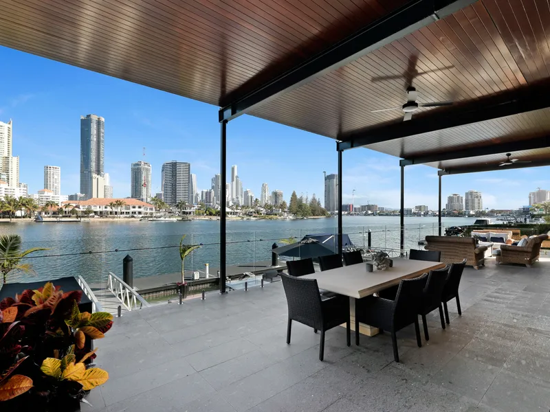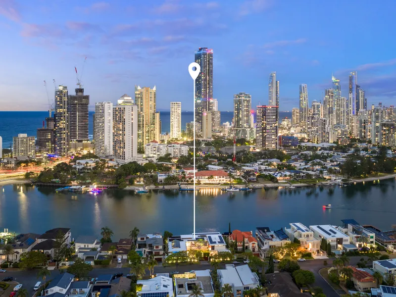 Paradise Waters is renowned as a prestigious enclave of Surfers Paradise, and this residence capitalises on that elite position. Tucked away in a quiet waterfront street, the home lies mere minutes from the best the Gold Coast has to offer. The patrolled sands of Narrowneck Beach, Macintosh Island Park, and the boutique cafes and restaurants of Tedder Avenue in Main Beach are all just a short stroll or drive away. Meanwhile, world-class shopping, fine dining and entertainment in Surfers Paradise and nearby Main Beach remain conveniently close, placing every luxury at your fingertips. For boating enthusiasts, the direct Broadwater access from your private pontoon is an unbeatable advantage of this location.