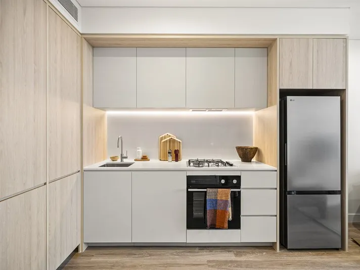 Enjoy city living in this light-filled west-facing corner apartment, complete with a large balcony, spacious living area, and stylish kitchen. A warm and inviting home, designed for both comfort and modern living