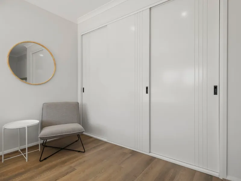 Outside, the low-maintenance oasis awaits, designed to give you more time to enjoy life and less time worrying about upkeep. With almost zero garden maintenance required and a private rear-access double garage with remote control, convenience is key in this home.