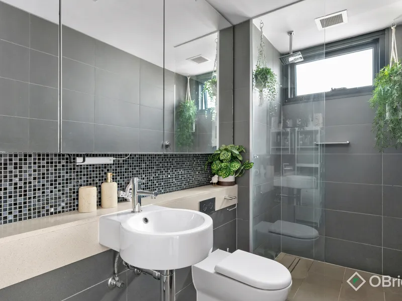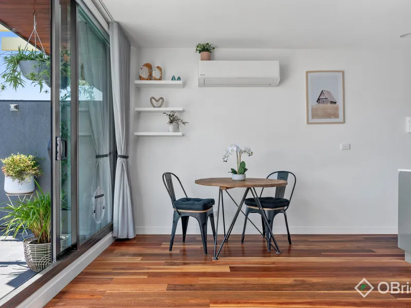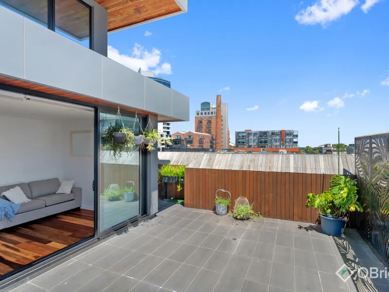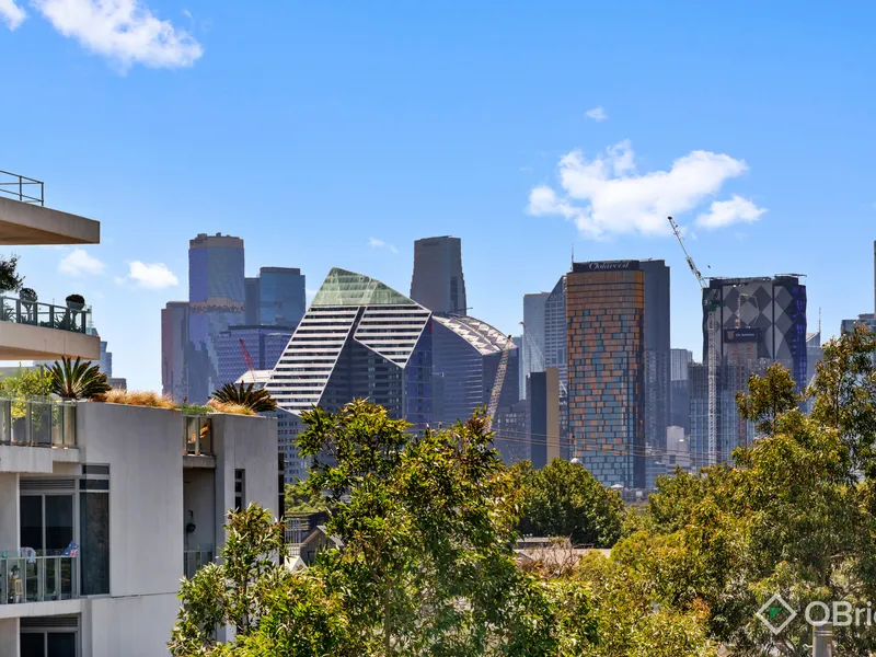 Enjoy spectacular views of the city skyline and Port Phillip Bay from this stylish one-bedroom apartment, perfectly positioned on the third floor of a secure boutique building. Featuring an impressive 40sqm (approx.) north-west facing terrace, this home offers exceptional indoor-outdoor living - ideal for entertaining, relaxing in the sun, or enjoying the sweeping outlook.