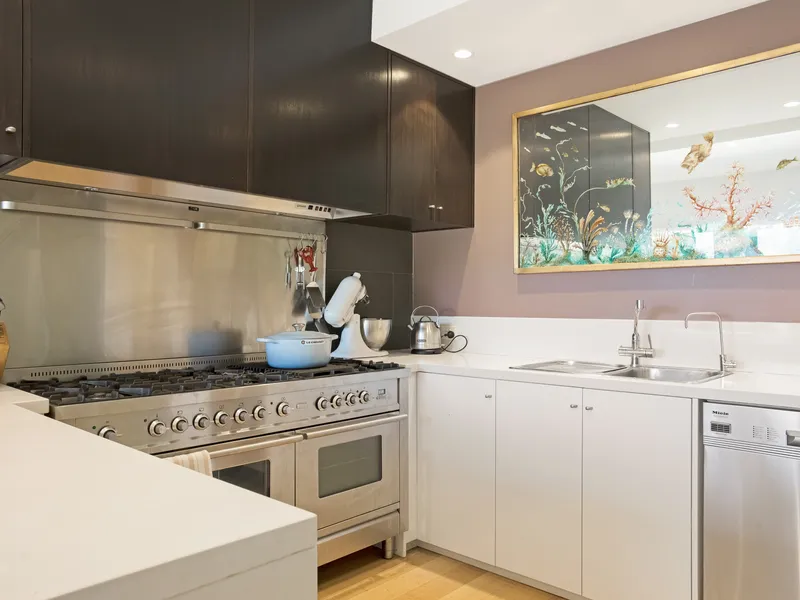 Located just a short walk to the Portsea village, the home features three bedrooms, a main bathroom plus a separate powder room, and a light-filled open plan living, dining, and kitchen zone designed for year-round comfort. A welcoming open fireplace anchors the living area, while the kitchen is well appointed with a large gas hob, ideal for those who love to cook and entertain.