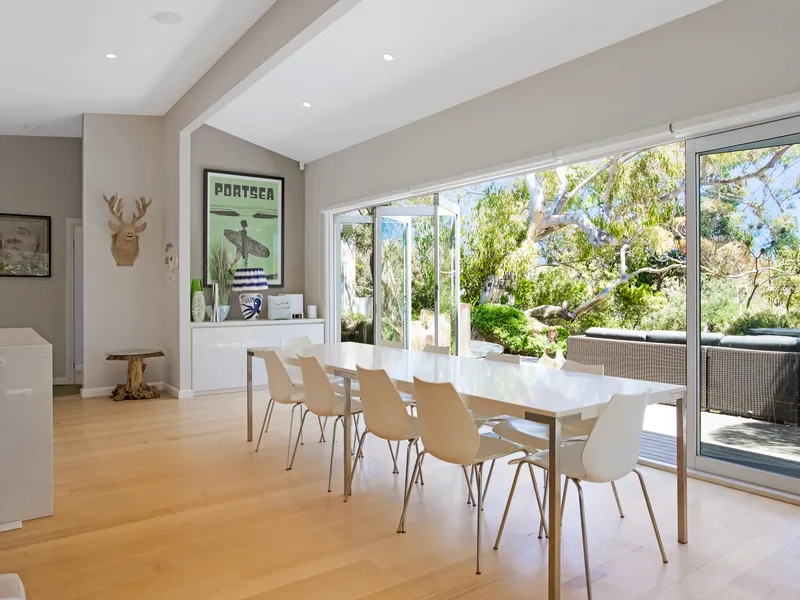 Tucked away in a peaceful bushland setting, this beautifully furnished Portsea retreat offers relaxed coastal living with a rare blend of privacy, space, and lifestyle amenities.