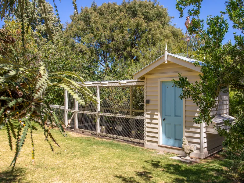 Adding to the charm, egg laying chickens are housed in their own pen, offering a touch of country living by the coast.