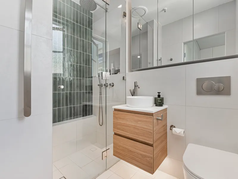 - Renovated bathroom with mirror cabinet storage and heated towel rail