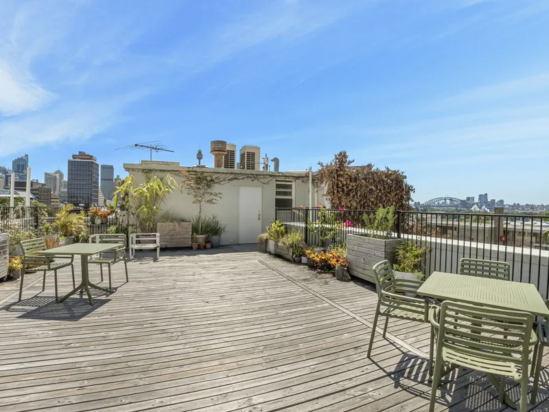 - Communal rooftop with spectacular city skyline and Harbour Bridge views