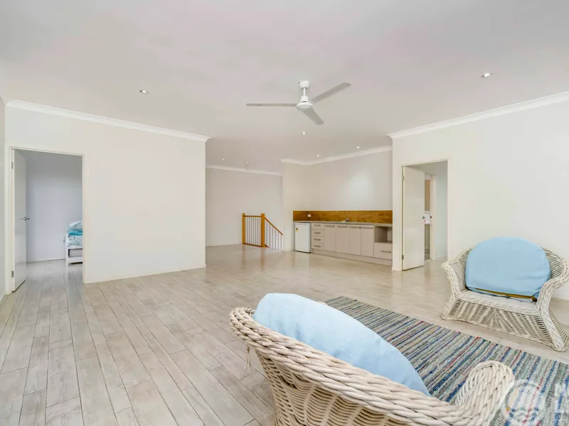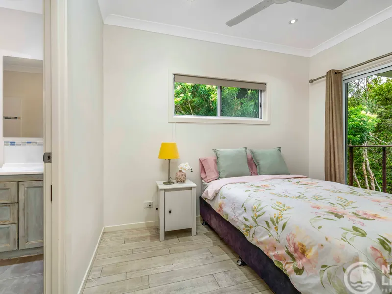 Outside, you'll find a spacious backyard that is perfect for children to play and for entertaining friends and family. The covered outdoor patio's provides the ideal space for alfresco dining, while the natural bush creates a tranquil oasis for relaxation where you can sit and watch the wildlife.