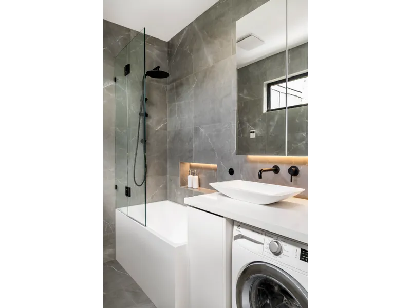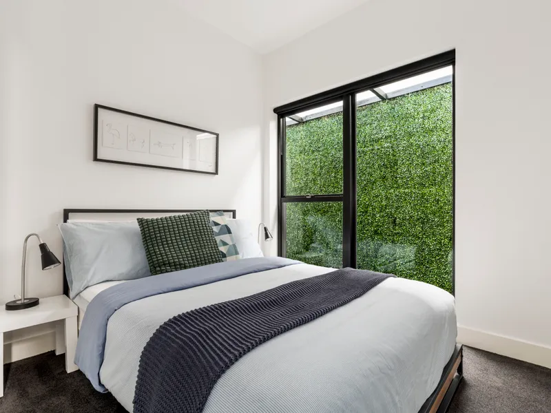 This stunning fully-renovated two bedroom, two bathroom single-level residence is a chic retreat that promises convenience footsteps from Lumley Park, High Street trams and Prahran East Village. A private living room with a window wall onto the outdoors flows through to a dining zone and smart kitchen and out to a super private courtyard with feature decked seating perfect for entertaining. A modern kitchen is well appointed with stone benchtops and splashback, overhead cupboards and quality appliances including a dishwasher. A beautiful main bedroom with built-in robes and stylish ensuite opens to a pretty north-facing courtyard, while the second bedroom with built-in robes is serviced by a fully tiled bathroom with tub, rain shower and laundry facilities. Both bathrooms with under floor heating. Feature filled, the home includes engineered Oak floorboards and split system heating and air conditioning in a great location.