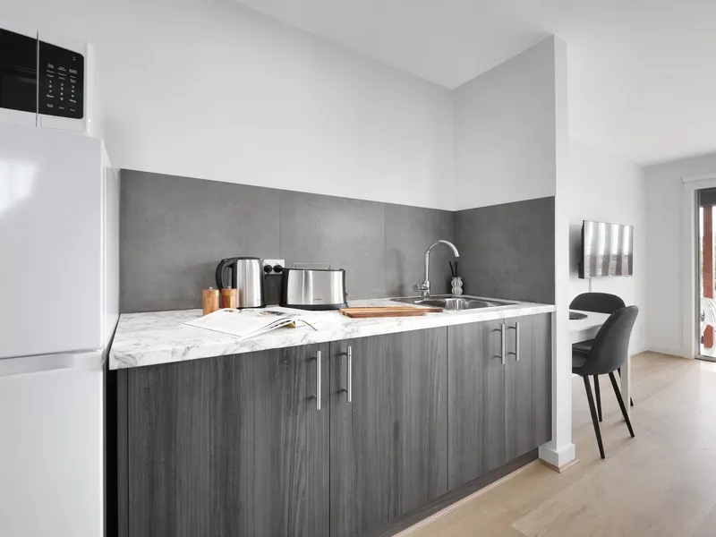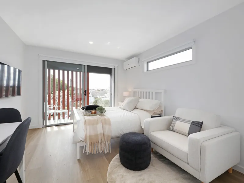 Brand new designer 1 bedroom, modern, fully furnished studio room, within building of 9. With communal access into the building, open plan kitchen, dining and laundry.