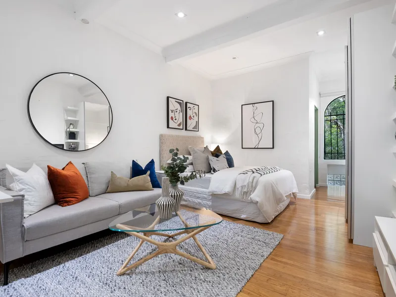 Nestled in the heart of one of East Redfern’s finest streets, this beautifully renovated terrace offers effortless urban living in a peaceful, tree-lined cul-de-sac. With easy level access, a versatile floor plan, and high ornate ceilings, this home is just moments from the vibrant Wunderlich Lane precinct, Danks Street and convenient transport options.