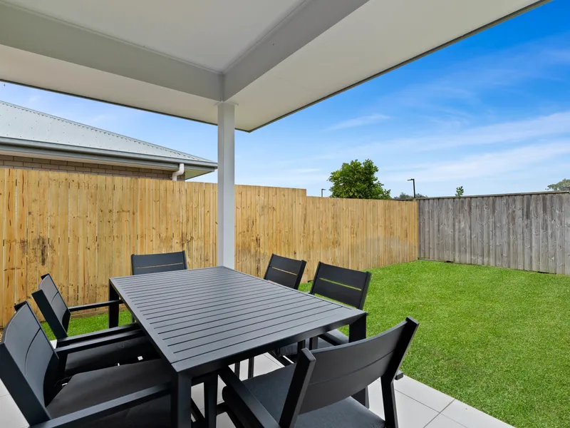 • Relaxing Alfresco Area: Furnished outdoor space with a ceiling fan, perfect for enjoying the low-maintenance backyard