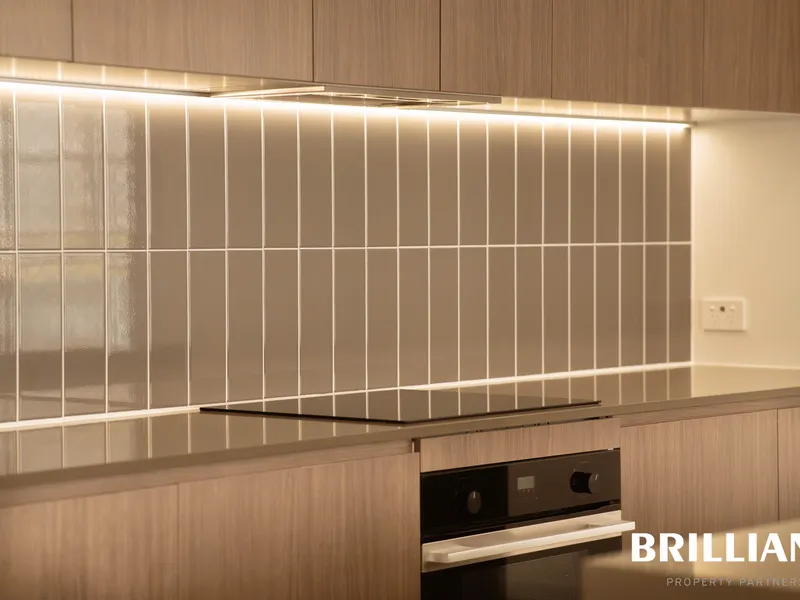 • Designer kitchen with stone benchtops, stainless steel appliances and great storage