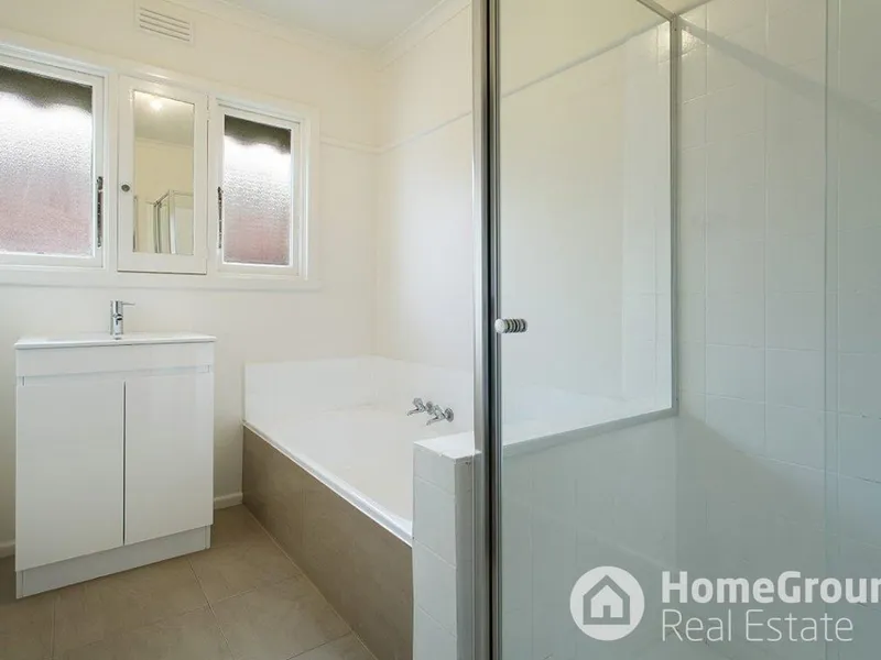 Featuring three good-sized bedrooms with built-in robes, a kitchen with gas cooking and ample cupboard space, a spacious meals area, and a formal lounge, this property is ideal for modern family living. The main bathroom includes a separate bath and shower, complemented by a powder room and separate laundry for added practicality. Step outside to a landscaped backyard, perfect for year-round entertaining.