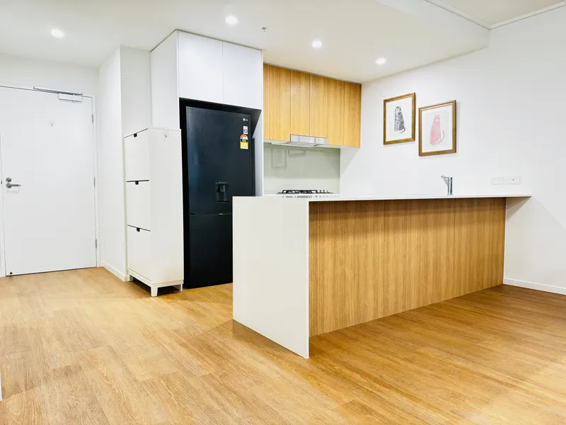 - High ceilings in kitchen and living area