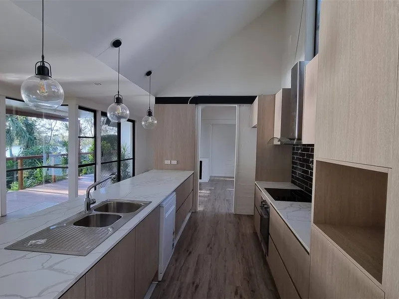 Open plan living with water views from the kitchen and dining room. Plenty of privacy with 6 x bedrooms separated from the main living area by a glass archway and a courtyard.