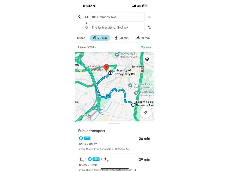 • ?? Around 20+ mins bus to University of Sydney