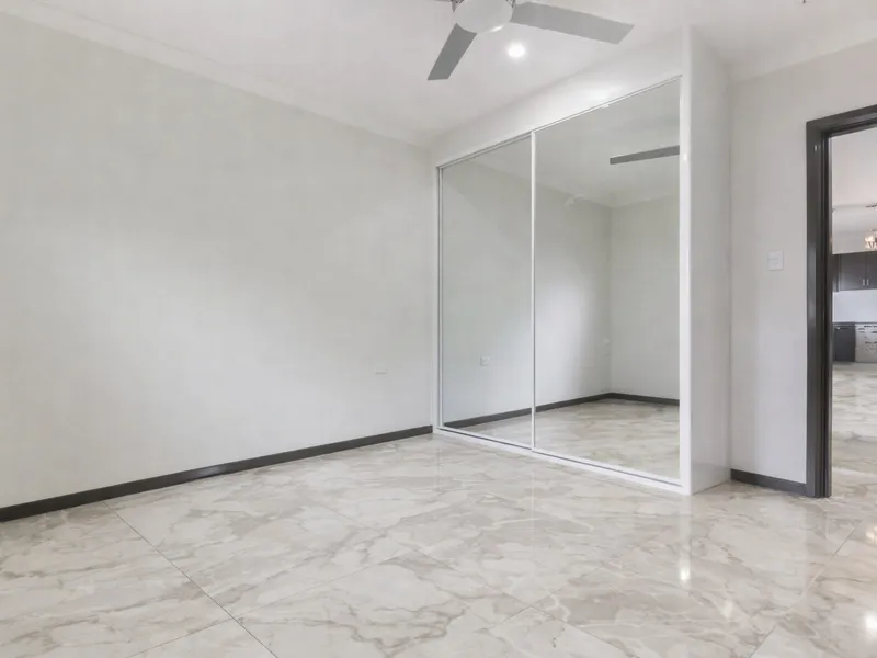 Featuring a large living room complete with air conditioning, the home flows through to a functional kitchen equipped with electric appliances. There are four well-sized bedrooms, all with mirrored built-in wardrobes, while the main bedroom also includes a walk-in robe.