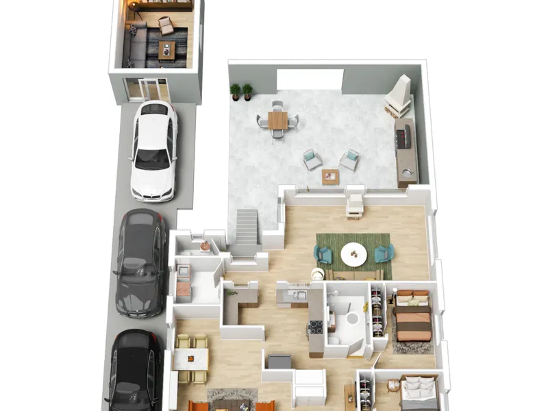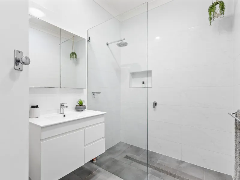 All three bedrooms are generously sized and serviced by a central bathroom, thoughtfully designed for family convenience.