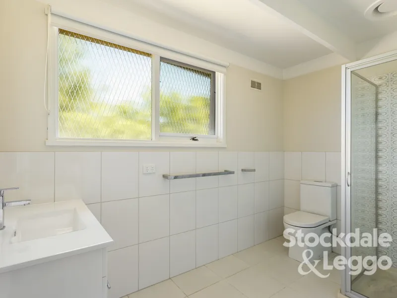 The home comprises three generously sized bedrooms, all complete with built-in robes. The main bedroom features a large private ensuite, while the central family bathroom includes a separate bath, perfect for families with young children.
