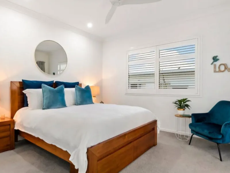 Inside, the home features a fresh, contemporary design with high ceilings and tiled flooring that create a light and spacious atmosphere. Comfort is assured year-round with reverse-cycle air conditioning and quality ceiling fans throughout.