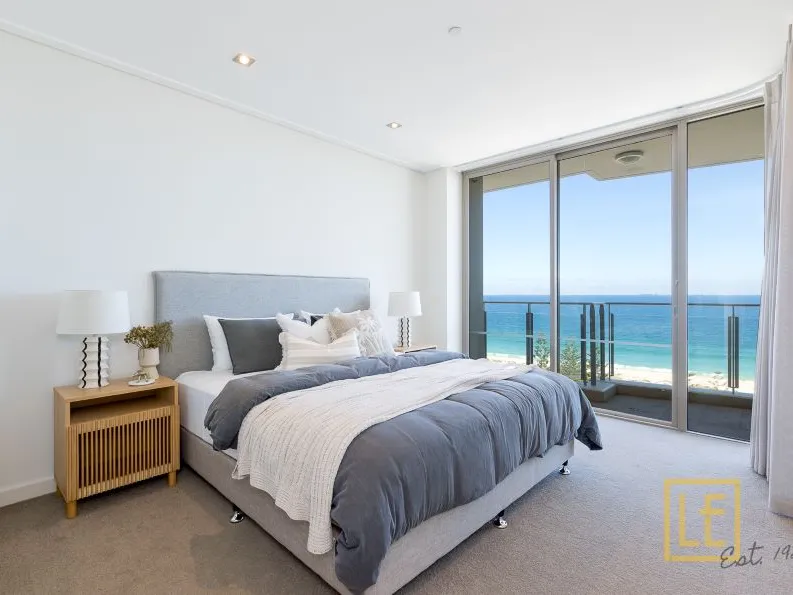 The master bedroom consists of a separate walk-in robe with an ensuite that overlooks the ocean view. It has electric blinds opening up to the balcony. The second and third bedroom, both consist of built in wardrobes with ample storage space and also comes with a powder room and fully equipped laundry.