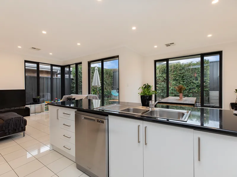 At the heart of the home is a well-appointed kitchen featuring quality stainless steel appliances, generous storage, and a functional layout that will delight those who love to cook and entertain. The spacious open-plan living and dining area flows effortlessly to a private alfresco space, creating the perfect setting for relaxed indoor-outdoor living.