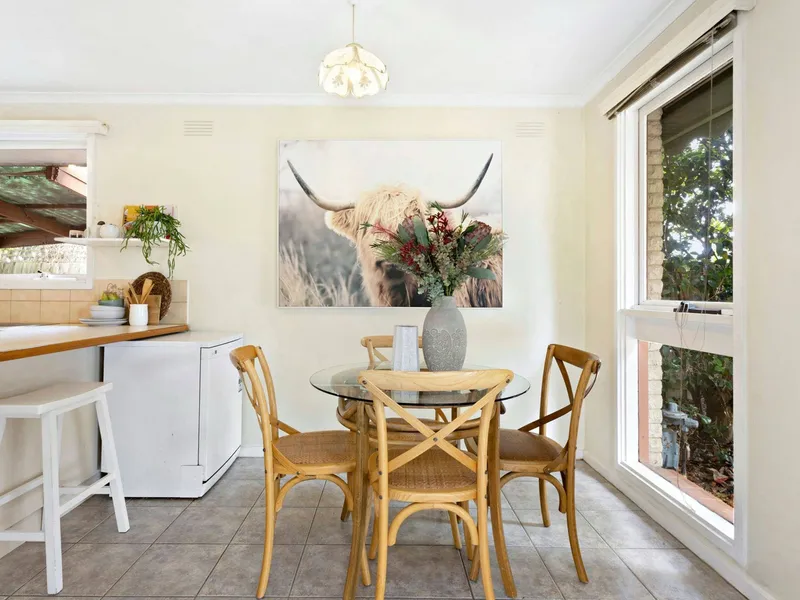 Inside, you'll enjoy an abundance of natural light and fresh new carpet throughout. The spacious lounge room overlooks the peaceful front garden, while the central kitchen offers ample bench space, a gas freestanding cooker, and an inviting meals area.