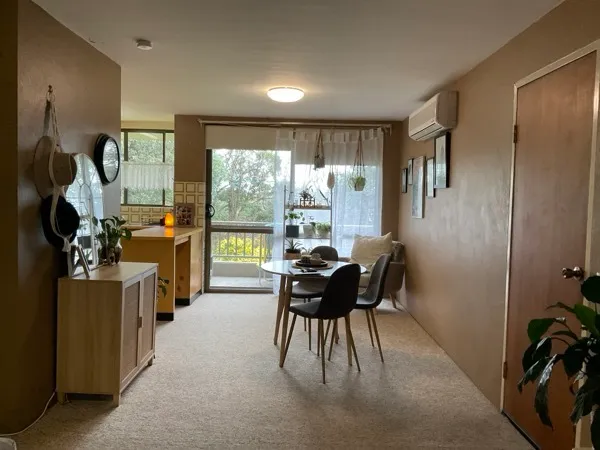 - Combined air-conditioned living and dining area with opening onto a small back courtyard and separate front verandah