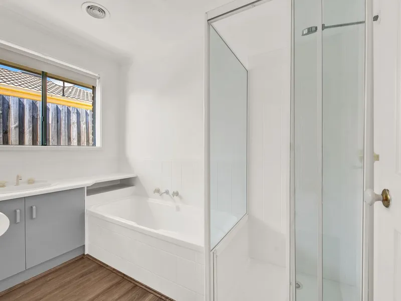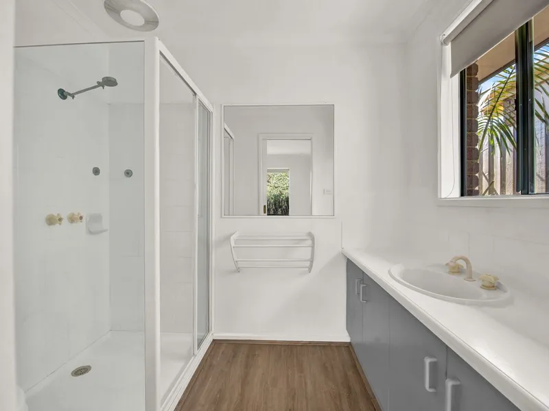 This charming home offers a perfect balance of comfort and convenience, featuring stylish floorboards throughout the lounge area with a spacious open layout. The master bedroom includes a full ensuite with triple robes as well as a ceiling fan while two additional bedrooms are well-sized featuring double robes and serviced by a central bathroom featuring the added convenience of a relaxing bath.