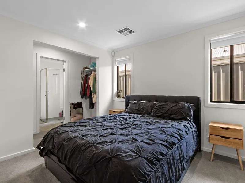 Step inside to discover a bright and contemporary interior, featuring four carpeted bedrooms designed for relaxation. The master suite boasts a walk-in robe and a luxurious ensuite with his and her basins, providing the perfect retreat. Bedrooms 2, 3, and 4 come equipped with built-in robes, ensuring ample storage space for everyone.