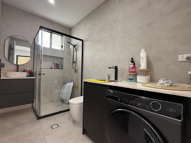 . Stylish combined bathroom and laundry with modern fittings