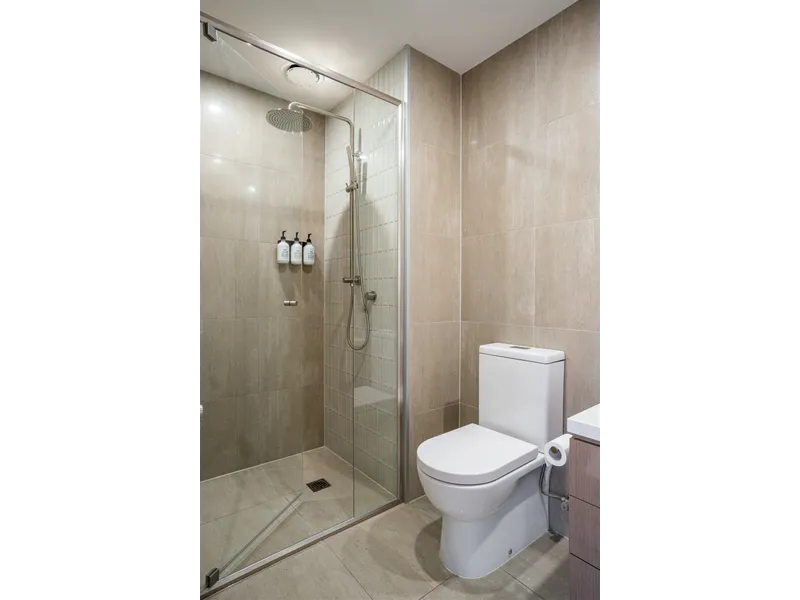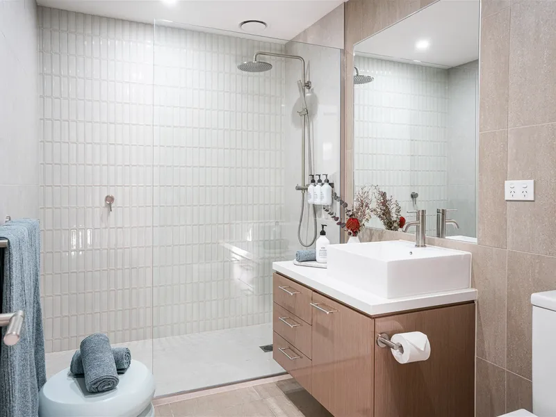 The spacious and light-filled apartment has open plan living, a private balcony, 2 bedrooms and 2 bathrooms. The entire apartment is kept ultra comfortable all year round with ducted heating and cooling throughout.