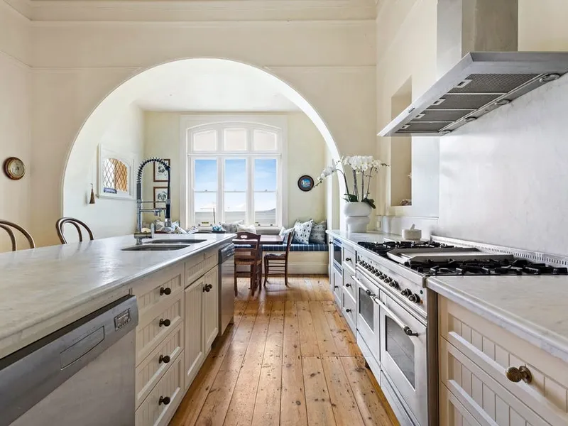 Original period details including 14ft ceilings, leadlight windows, Baltic pine floors, and open fireplaces