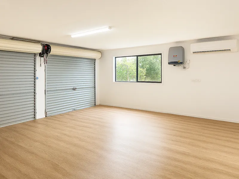 Downstairs features an extra-large room that can be used as a fourth bedroom or a second living area. The double-sized carport has been fully floored, providing a versatile space that can be used as a games room or secure car storage.