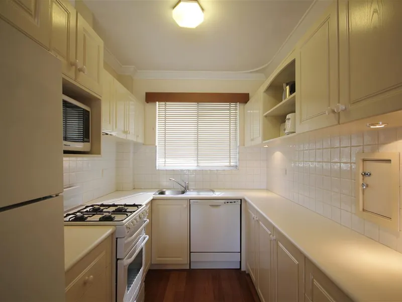 Two-bedroom one bathroom unit with hardwood floors and ducted air conditioning throughout, gas cooking and dishwasher in large kitchen. Lockup garage for 1 car in this small secure complex.