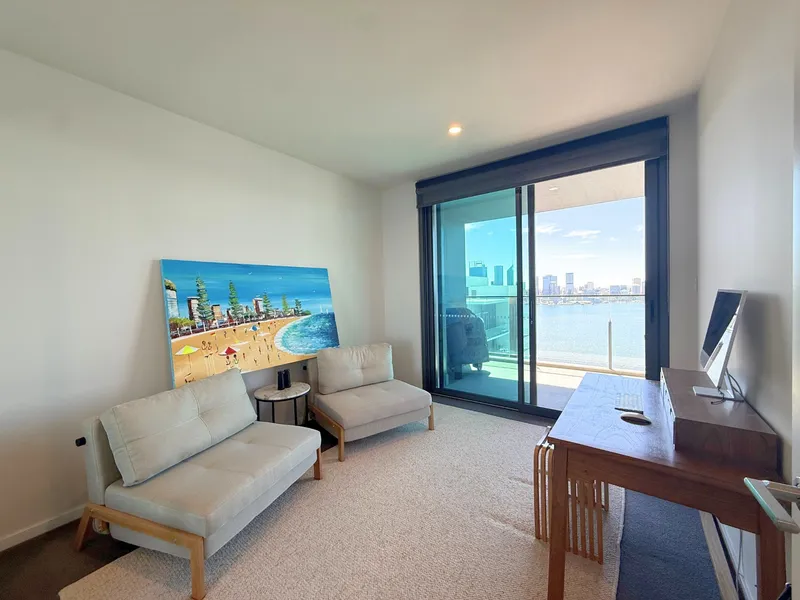 Positioned high on Level 21, this stunning furnished residence enjoys spectacular elevated views across the Swan River and surrounding cityscape. Floor-to-ceiling glazing floods the apartment with natural light, while the expansive balcony creates the perfect setting for year-round indoor-outdoor living, entertaining or simply unwinding above it all.