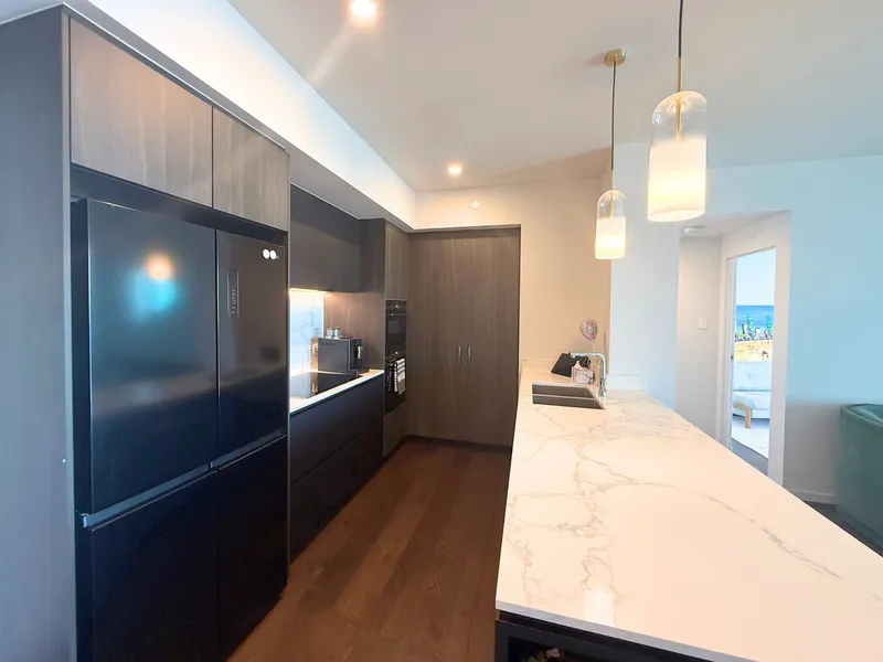 - Gourmet kitchen with reconstituted stone benchtops and premium appliances