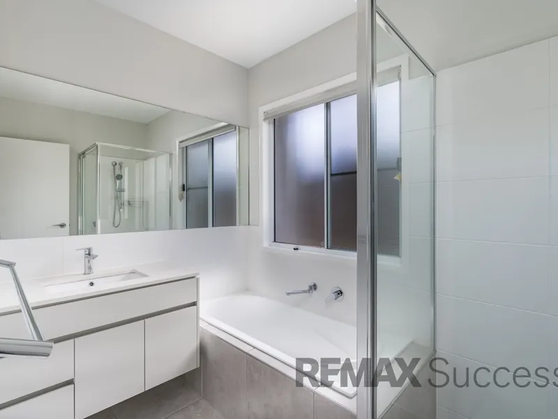 The main bathroom is contemporary in design and includes both a separate shower and bathtub with a modern vanity. An internal laundry positioned off the garage includes a single wash tub and built-in cupboard for additional storage.