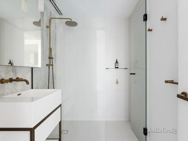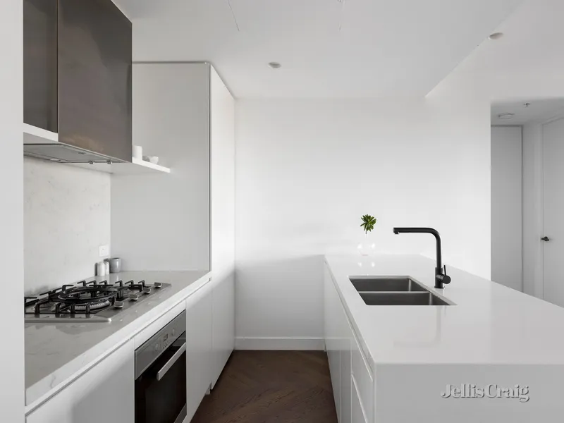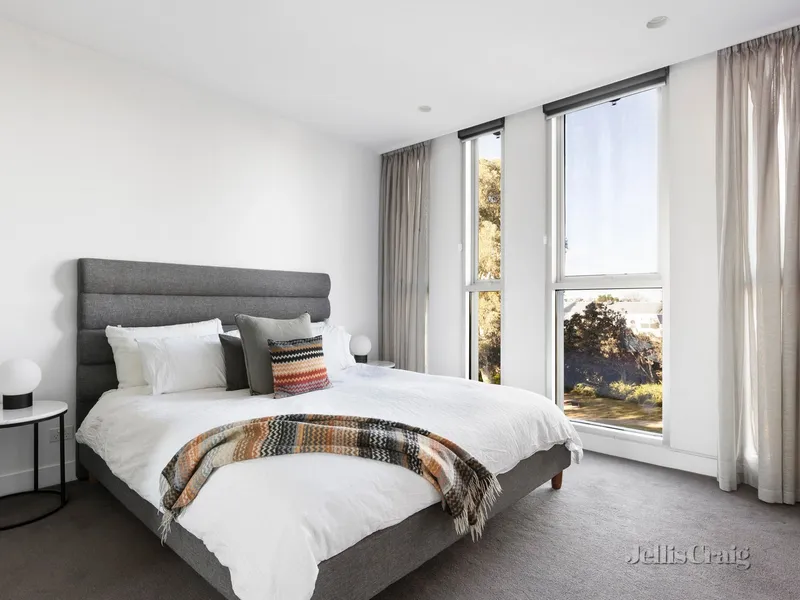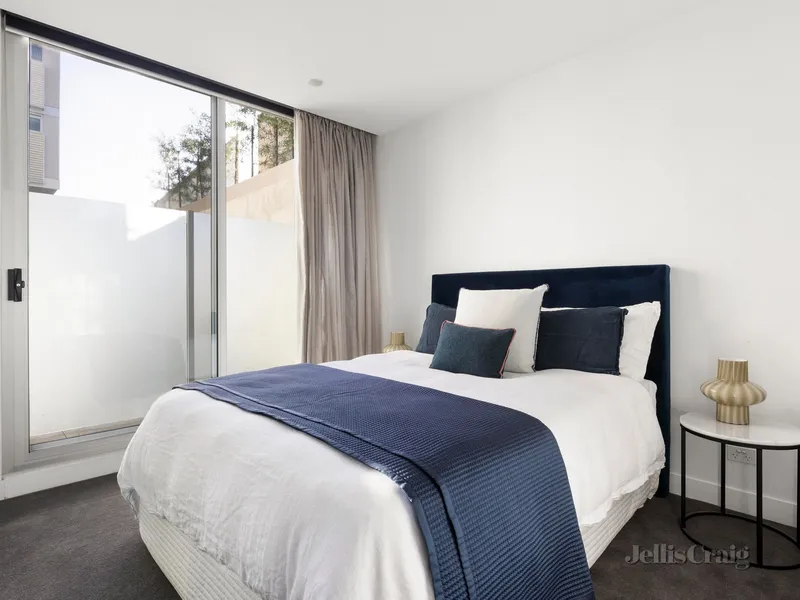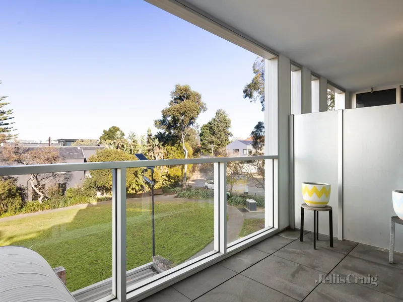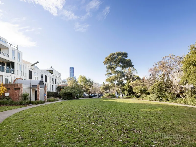 Steps from Fawkner Park and South Yarra’s vibrant retail and dining mecca, this elevated two-bedroom, two-bathroom apartment by Ellenberg Fraser overlooking parkland provides safe, secure, and stylish town living in a simply brilliant location. Capturing leafy outlooks over Caroline Gardens from its superb position within the exclusive RALSTON apartments, it is an idyllic lock-and-leave city-edge home, within walking distance to the Royal Botanic Gardens, Prahran Market, South Yarra Station, and Melbourne’s best restaurants. Inside, marble and herringbone oak finishes detail an exceptional layout, balcony access off the open plan living/dining domain and premium Miele and stone kitchen, plus two spacious bedrooms, including the main with designer ensuite. The second light-filled bedroom, with private north-facing balcony, is accompanied by a second bathroom and hidden Euro laundry. Outstanding security includes full time concierge and video intercom, with ducted reverse-cycle heating/cooling, built-in robes, secure basement parking for one and abundant storage add to the unbeatable comfort and ease.